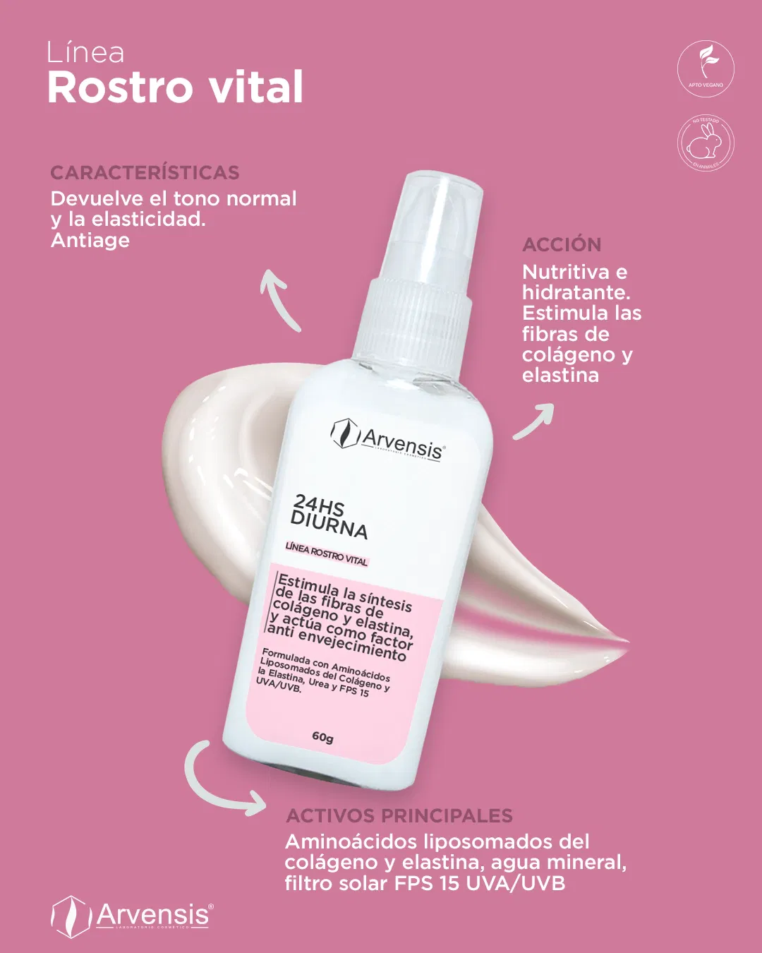 Acción: Nutritiva e hidratante. Estimula la síntesis de las fibras de colágeno y elastina, y actúa como factor anti envejecimiento.