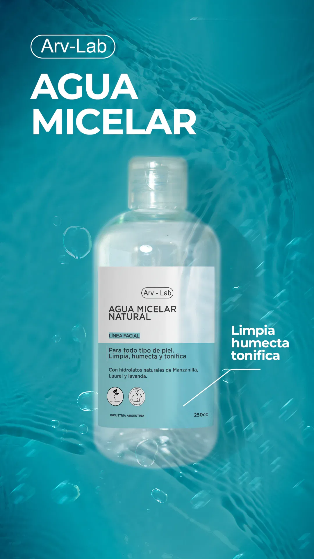 El agua micelar está formulado a base de micelas, que son moléculas capaces de atraer la suciedad y el sebo del rostro, aislándola y transportándola a través del agua para eliminarla de la piel. Son formadas por tensioactivos de origen vegetal, renovables y biodegradables. Parte del agua de la composición es reemplazada por hidrolatos naturales de lavanda, laurel y manzanilla. Los cuales son obtenidos del agua de condensación del proceso de destilación de aceites esenciales, conservando disueltos una pequeña cantidad de estos y manteniendo sus propiedades aromaterapéuticas.