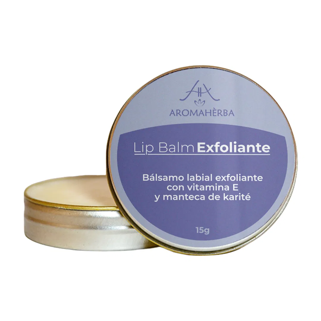 Bálsamo labial exfoliante con vitamina E y manteca de karité.
