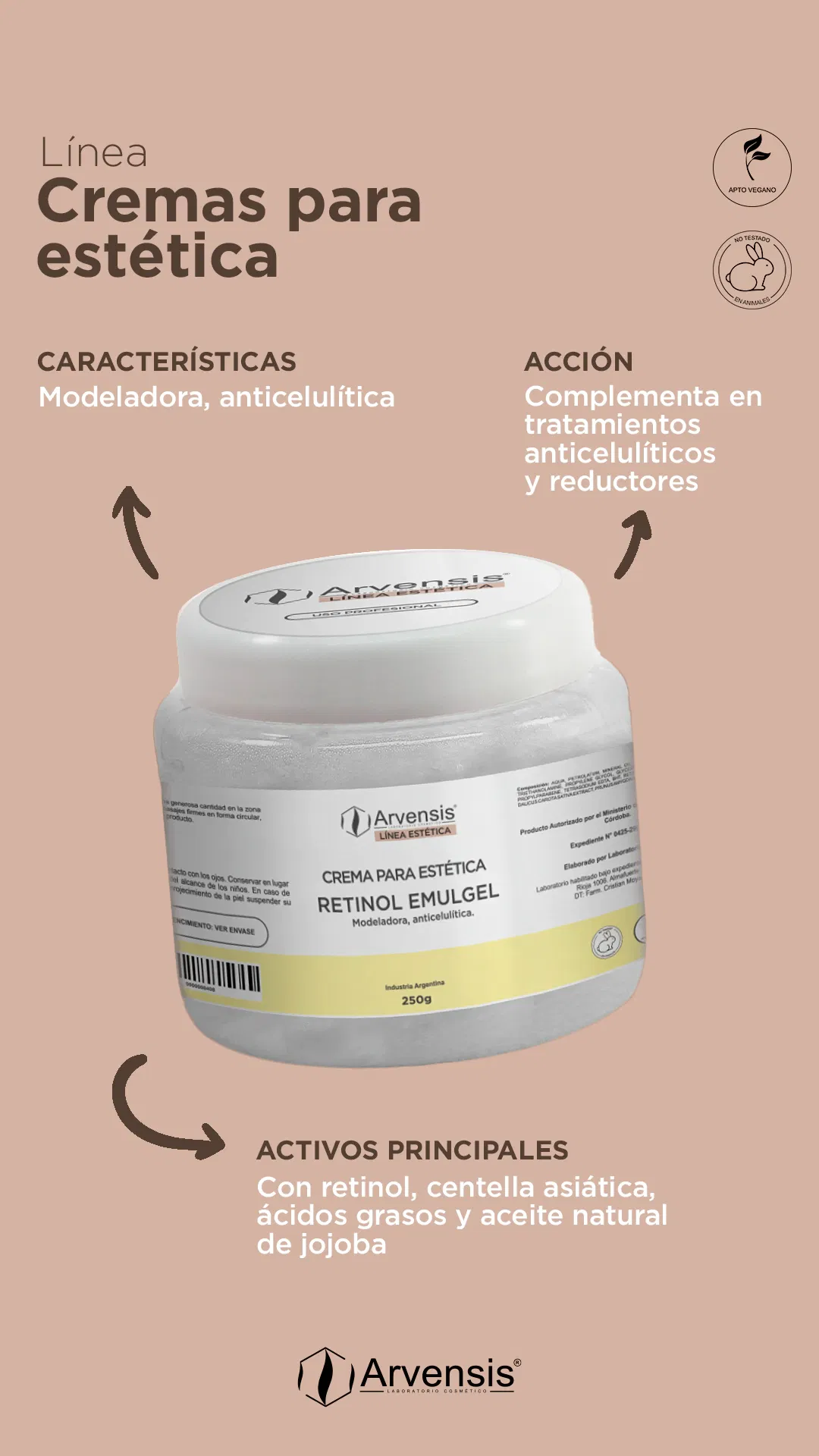 - Acción: Complementa en tratamientos anticelulíticos y reductores.